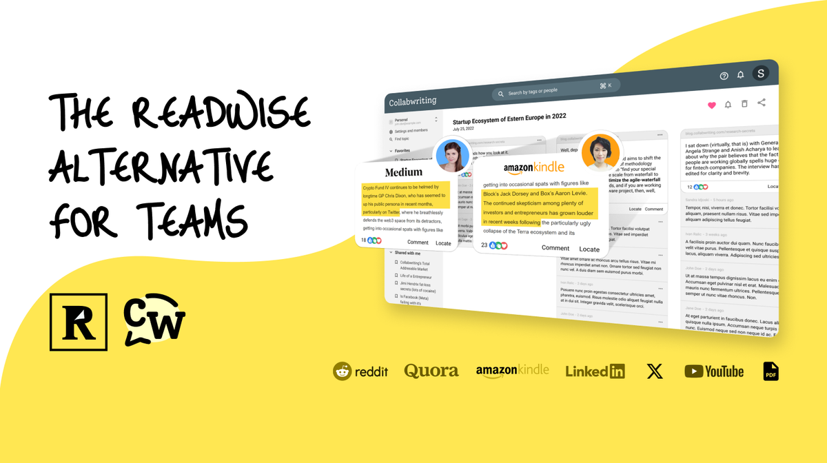 However, when you want to work with others - brainstorm, plan campaigns, or build content together, Readwise stops short.