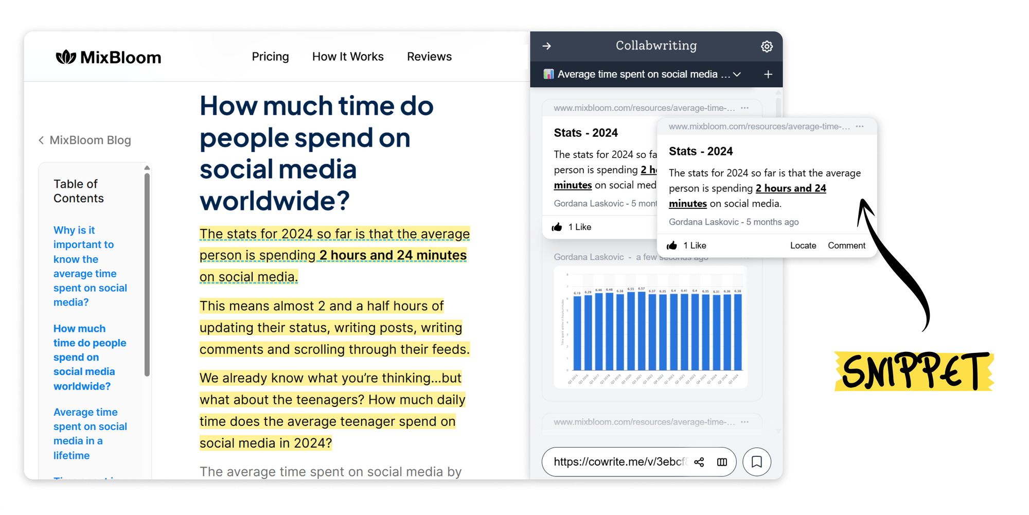 💡 Pro Tip: Organizing links, screenshots, and notes manually is time-consuming. Collabwriting allows you to capture highlights, add notes, and save sources in a structured way, so you can verify information and build credibility in research efficiently.